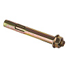 Оцинкованное покрытие обеспечит защиту от коррозии. Анкерный болт с гайкой (втулочный анкер) оснащен фиксирующей гильзой, длина которой равна размерам стального стержня. На хвостовой части шпильки выполнена клинообразная головка. При завинчивании гайки она смещается по резьбовой части. В результате перемещения происходит распирание втулки. Конструктивные особенности такого вида крепежа позволяют использовать его в легких видах бетонов с ячеистой структурой, а также в кирпиче, изготовленном из обожженной глины.