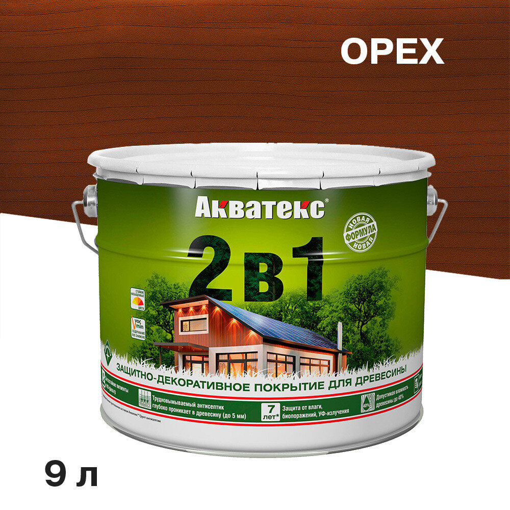 Антисептик Акватекс 2 в 1 биозащитный для дерева орех 9 л