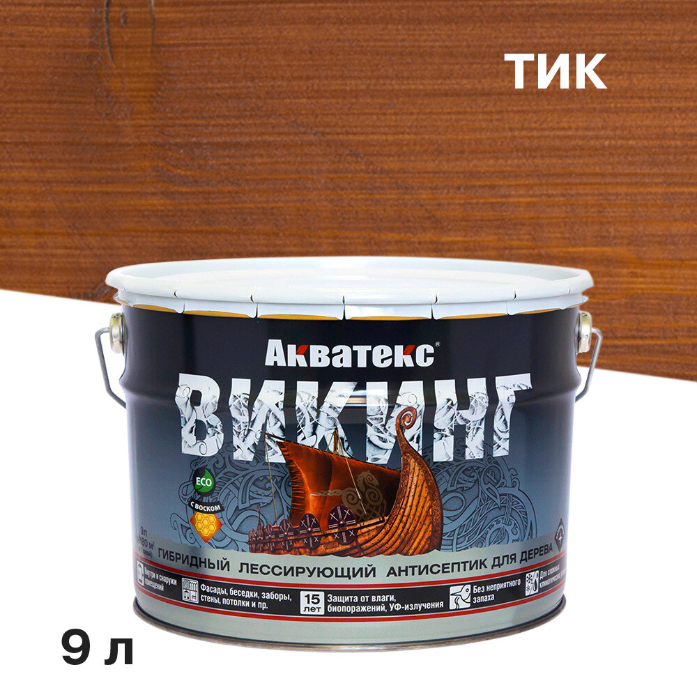 Антисептик Акватекс Викинг декоративный для дерева тик 9 л
