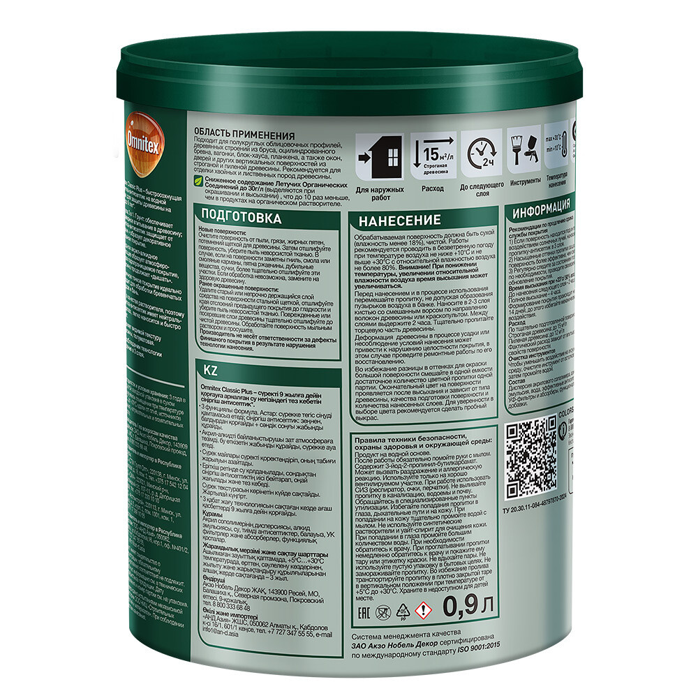Формула 3в1. Грунт обеспечивает равномерное впитывание в древесину; пропитка-антисептик защищает от плесени и образует декоративное финишное покрытие. Гибридное акрил-алкидное связующее образует атмосферостойкое паропроницаемое покрытие, древесина продолжает «дышать». Эластичное тонкое покрытие идеально подходит для обработки бревенчатых фасадов и бань. Вода в качестве растворителя, поэтому пропитка-антисептик имеет нейтральный запах, легко наносится и быстро сохнет. Сохраняет видимой текстуру древесины, полуматовая. Чем более насыщенный цвет пропитки, тем более выражены защитные свойства.