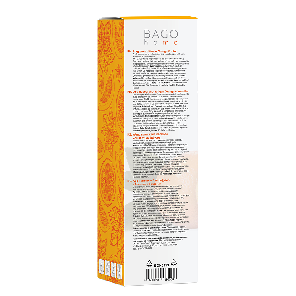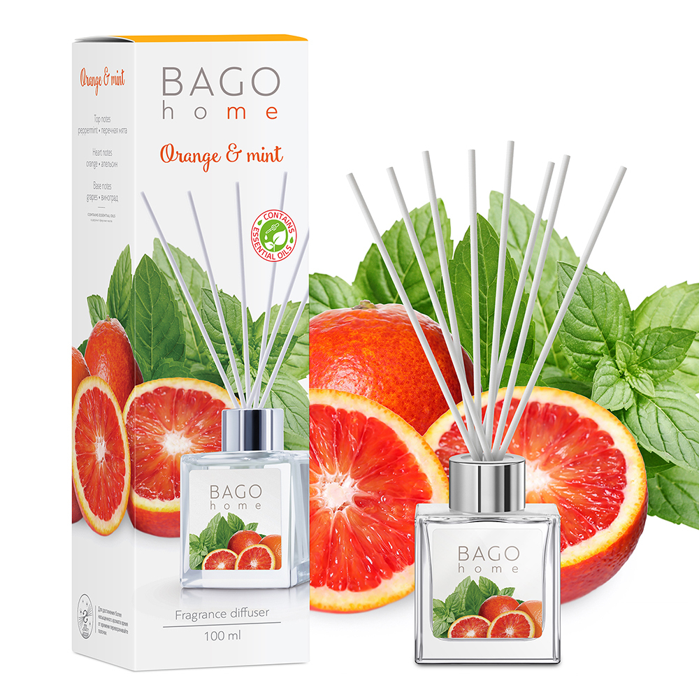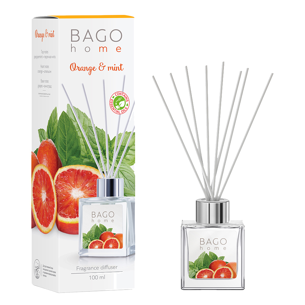 Аромадиффузор с палочками Bago home Апельсин с мятой 100 мл