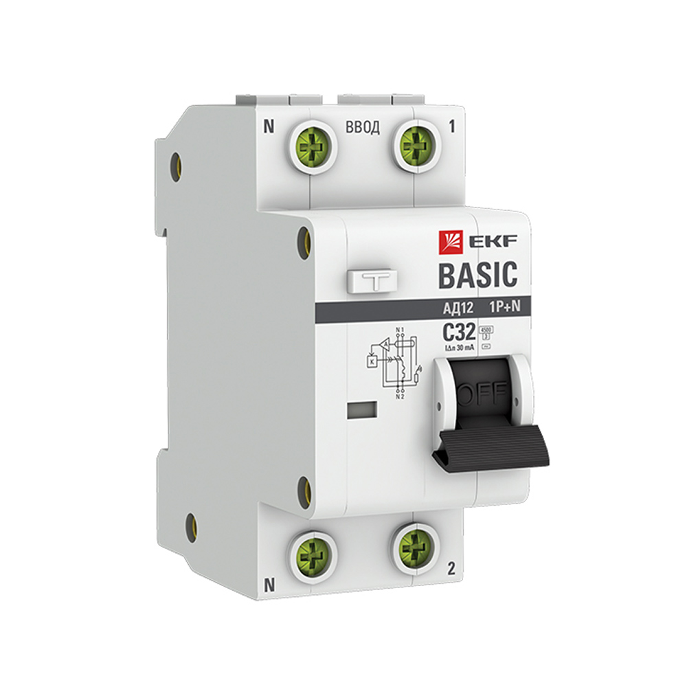 Автомат дифференциальный EKF Basic АД-12 32А 1P+N тип A 30 мА 4,5 кА (DA12-32-30-bas)