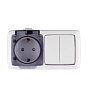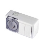 Блок выключатель и розетка Hegel Alfa двухклавишный накладной белый со шторками (БА 16-222)