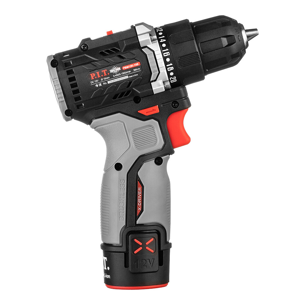 Дрель-шуруповерт аккумуляторная бесщеточная P.I.T. PBM12K-10B/2 12 В 1,5 Ач Li-Ion 2 АКБ и ЗУ