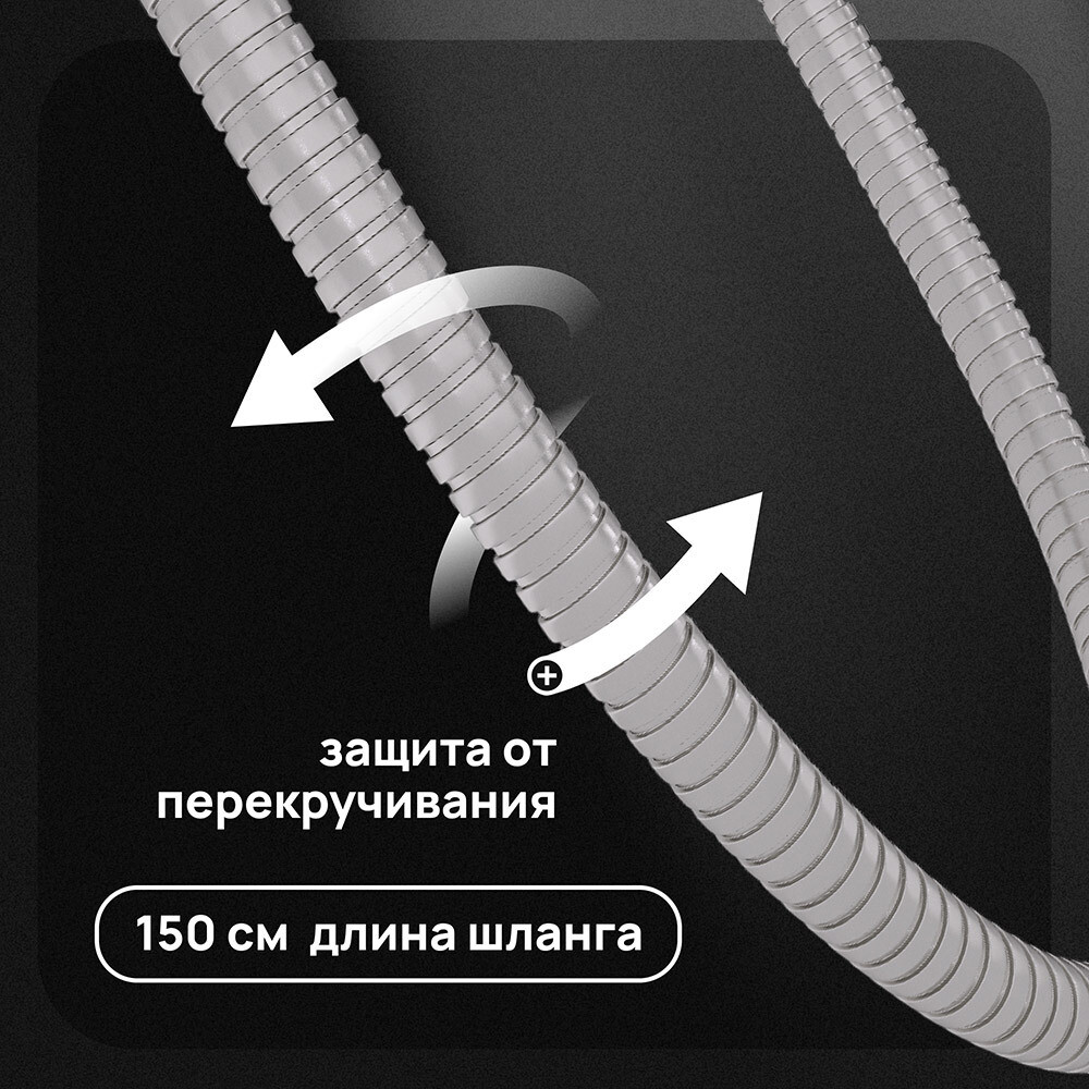 • Душевой шланг с оплеткой из нержавеющей стали - 150 см с защитой от перекручивания.