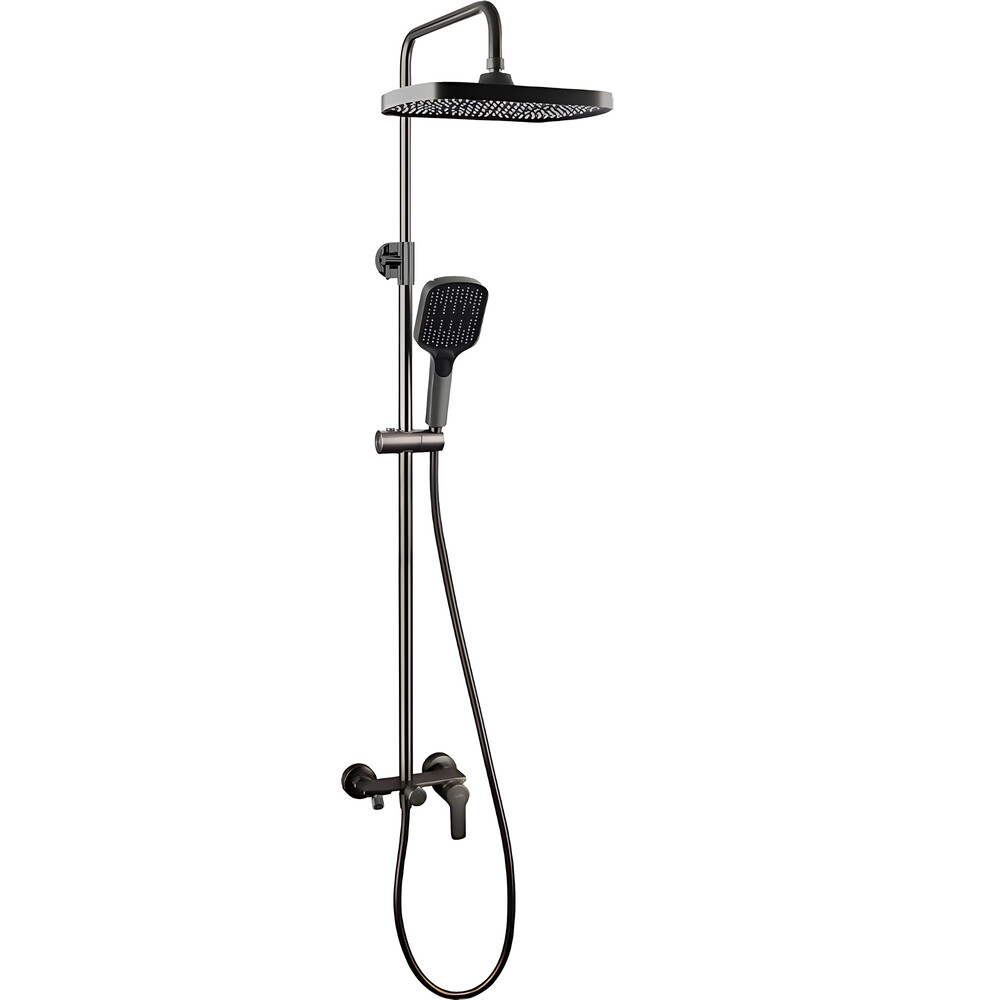 Душевая система Tokito Rain с верхним душем с лейкой с изливом сталь (TOK-RAI-1022GM)