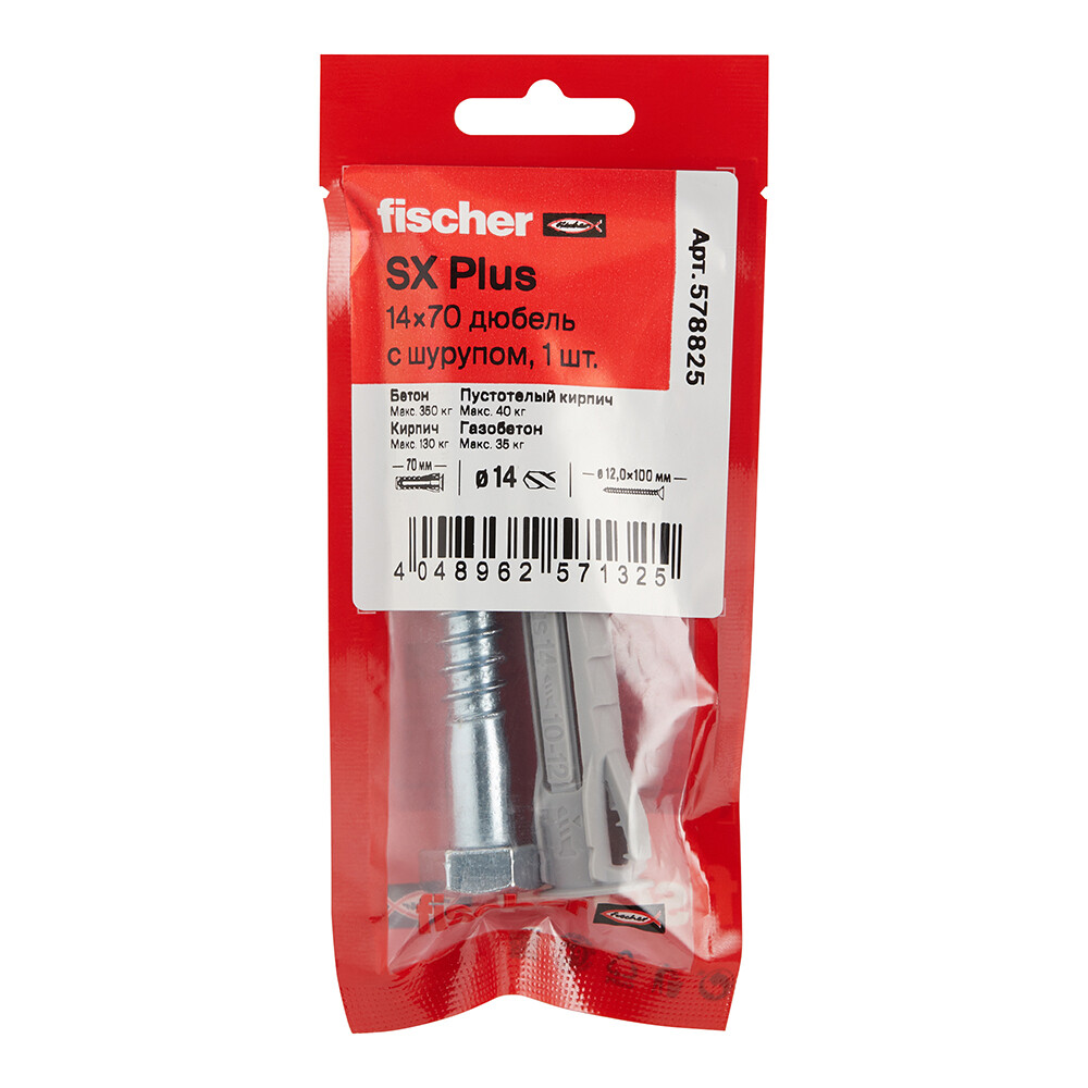 Дюбель распорный Fischer SX PLUS 14x70 мм нейлон с шурупом