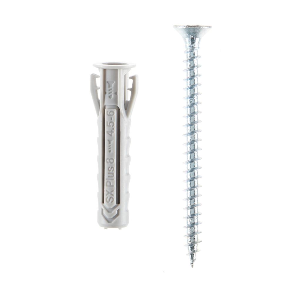 Специальная конструкция дюбеля SX Plus обеспечивает высокий момент затяжки, а также предотвращает чрезмерное затягивание шурупа. Подходит для шурупов по дереву и ДСП, а также для шурупов-шпилек.