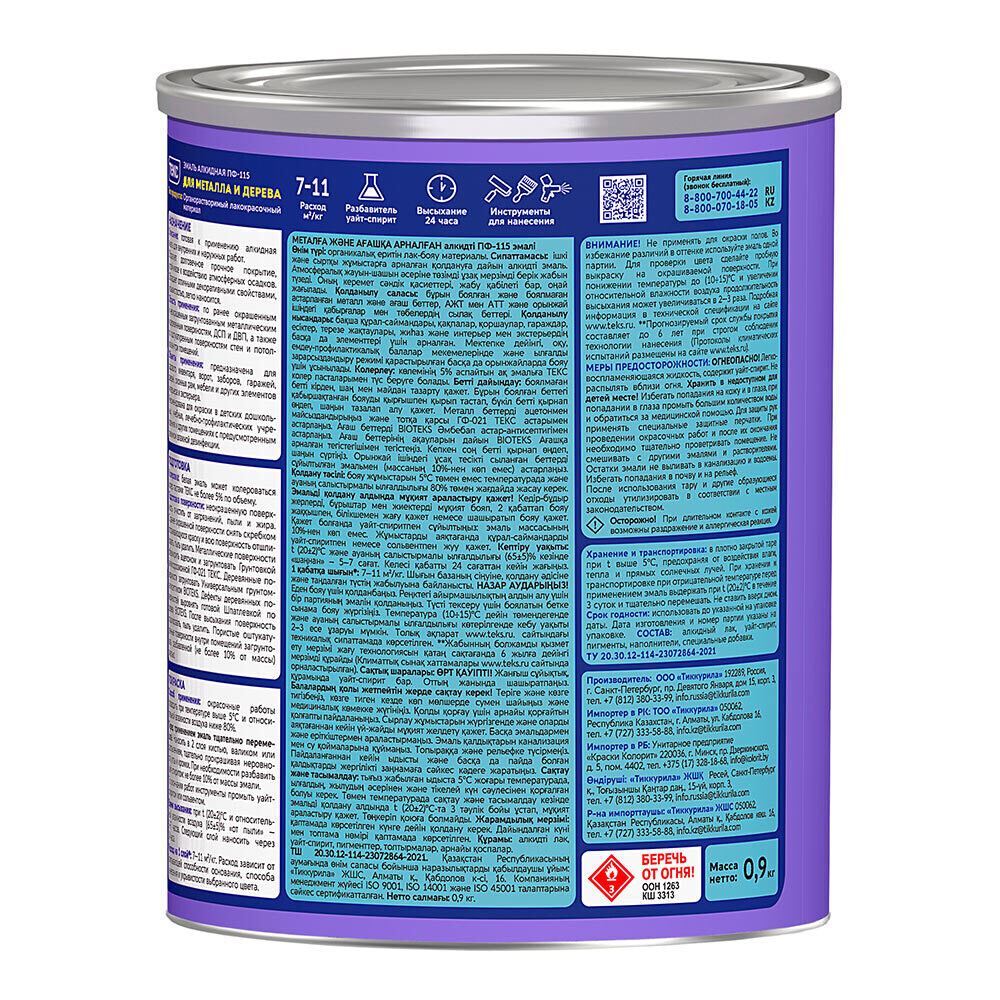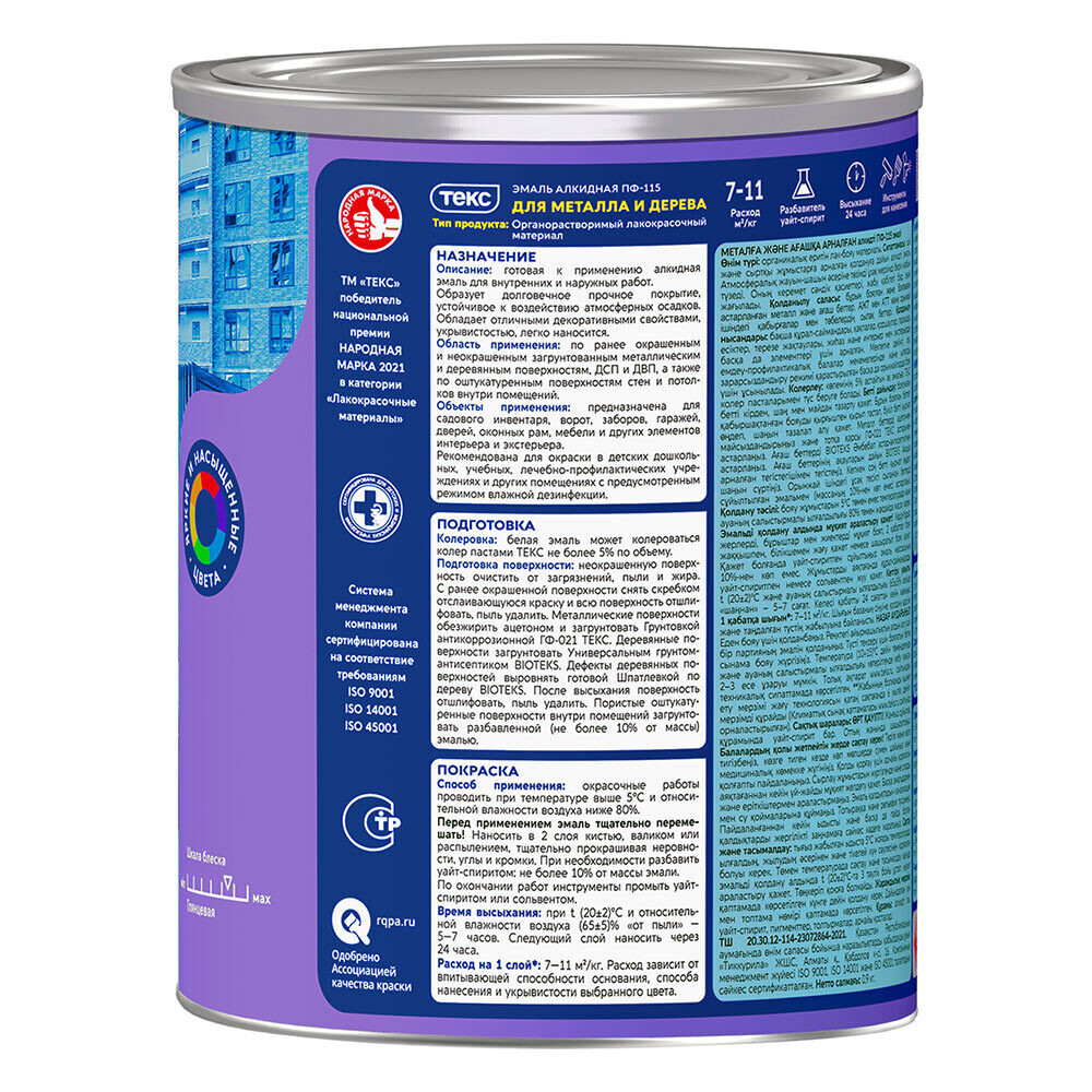 Эмаль ПФ-115 алкидная Текс Оптимум оранжевая глянцевая 0,9 кг