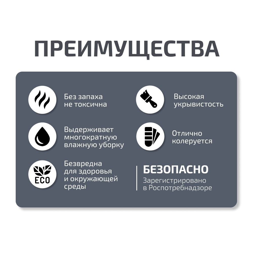 Состав: акриловая дисперсия, диоксид титана, вода, целевые добавки.