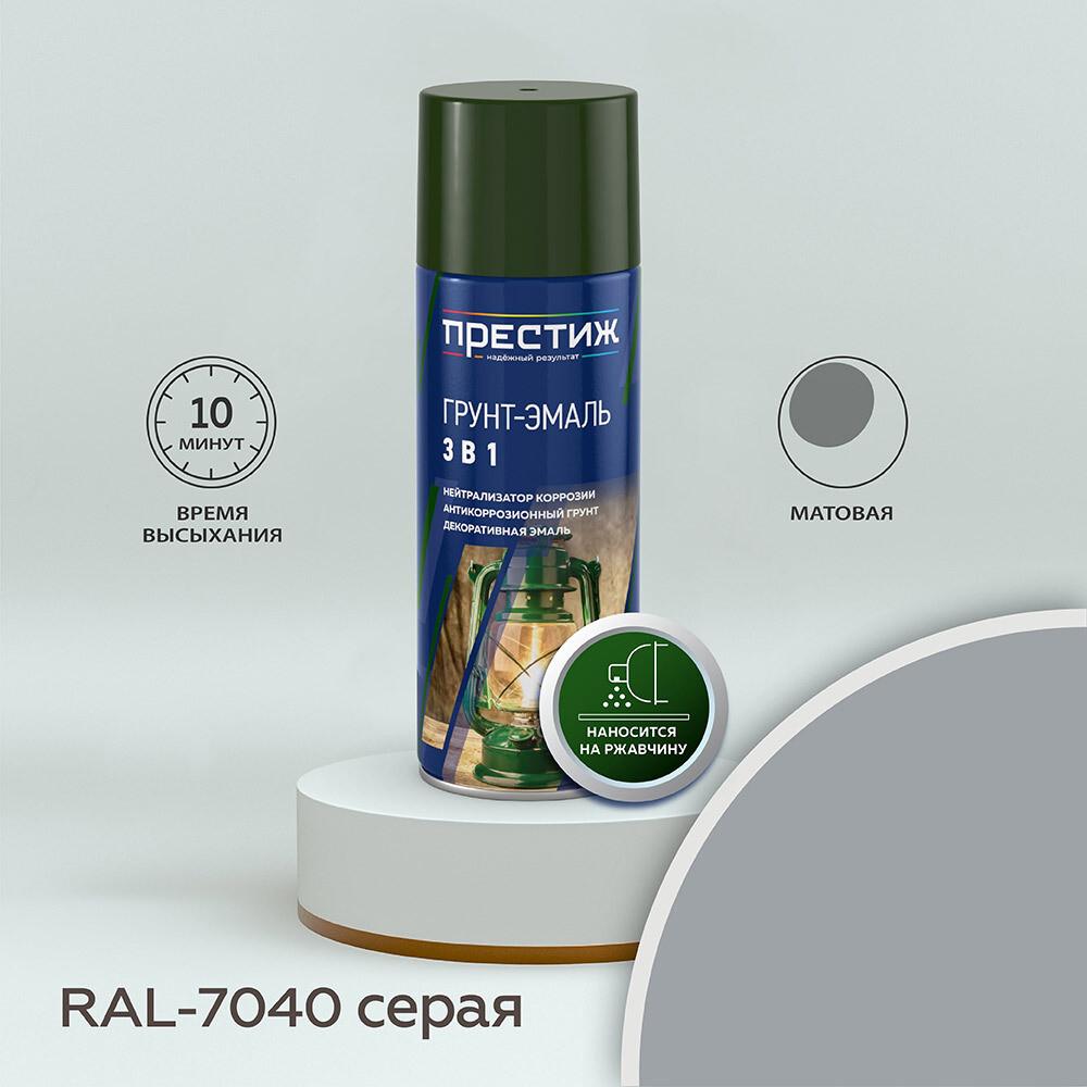 Грунт-эмаль аэрозольная по ржавчине Престиж серая матовая RAL 7040 425 мл