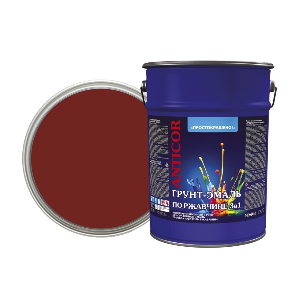 Грунт-эмаль по ржавчине 3в1 Простокрашено красно-коричневая глянцевая 5 кг