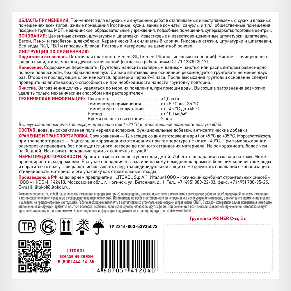 Грунт Litokol Primer C-m глубокого проникновения 5 кг