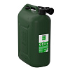 Канистра для ГСМ и технических жидкостей в зеленом цвете корпуса и в комплекте с гофрированным гибким шлангом.