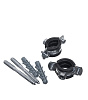 Состав: хомут, шпилька М8 – оцинкованная сталь, уплотнитель – резина, дюбель 10х50 мм – полипропилен.