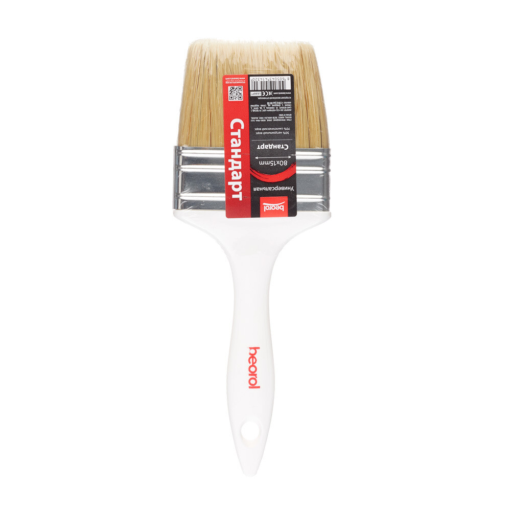 Кисть плоская смешанная щетина пластиковая ручка Beorol Universal 80х15 мм для эмалей и лаков на алкидной основе