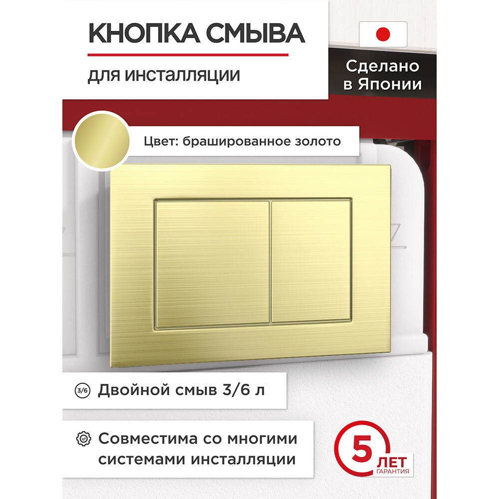 Клавиша смыва для инсталляций Tokito Tatsumaki брашированное золото (TOK-TATSUMAKI-SQ-GB)