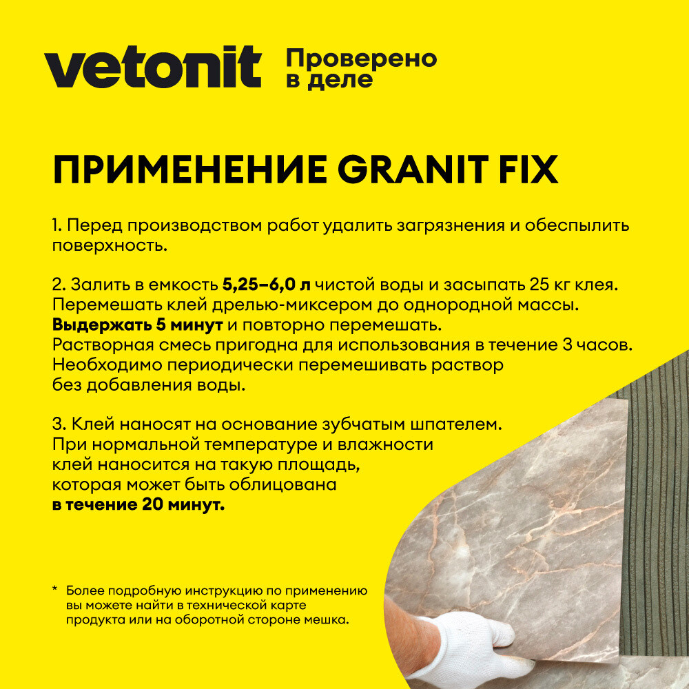 Клей для плитки/ керамогранита/ мозаики Vetonit Granit fix серый класс C2 T 25 кг