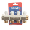 Коллектор Stout 1 ВР(г) х 4 выхода 3/4 НР(ш) ЕК х 1 НР(ш) регулируемый (SMB 6851 013404)