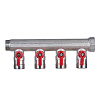 Коллектор Henco 3/4 ВР(г) х 4 выхода 3/4 НР(ш) ЕК х 3/4 НР(ш) с шаровыми кранами (VB050504-ROOD)