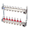Комплектация: Коллектор 1" внутр(г)х7 отводов 3/4" нар(ш) х 1" внутр(г) с термостатическими клапанами, коллектор 1" внутр(г)х7 отводов 3/4" нар(ш) х 1" внутр(г) с расходомерами, воздухоотводчик – 2 шт., дренажный поворотный кран – 2 шт., кронштейн для монтажа коллекторов – 2 шт.