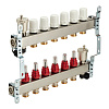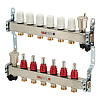 Комплектация: Коллектор 1" внутр(г)х6 отводов 3/4" нар(ш) х 1" внутр(г) с термостатическими клапанами, коллектор 1" внутр(г)х6 отводов 3/4" нар(ш) х 1" внутр(г) с расходомерами, воздухоотводчик – 2 шт., отсекающий клапан воздухоотводчика – 2 шт., дренажный поворотный кран – 2 шт., кронштейн для монтажа коллекторов - 2 шт.