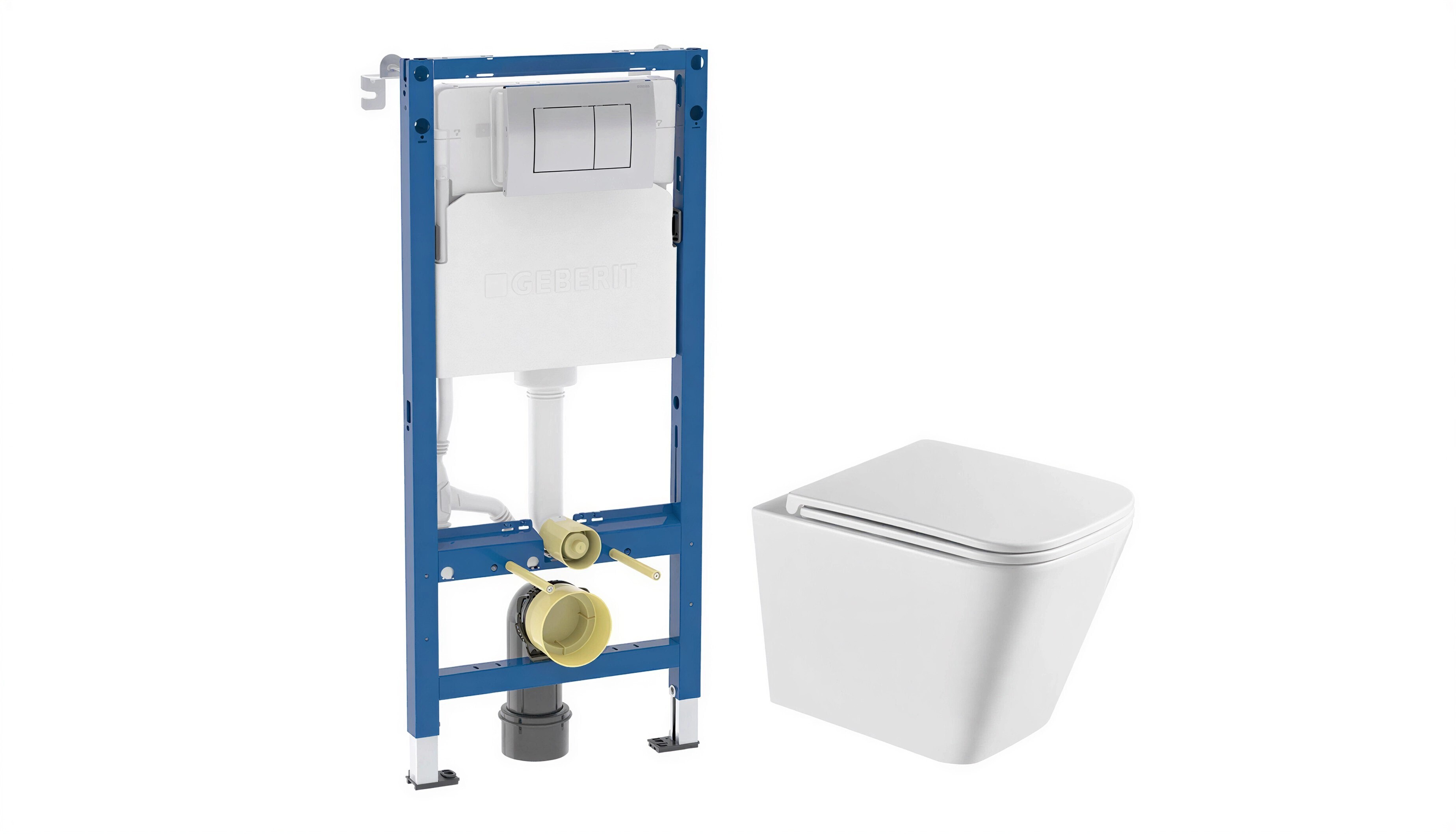 Комплектация: Инсталляция - 1 шт., унитаз -1 шт., клавиша смыва -1 шт., крепления к стене - 1 компл., присоединительные патрубки для подключения к канализации - 1 компл.