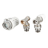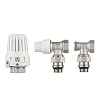 Набор предназначен для бокового подключения прибора водяного отопления, автоматического регулирования расхода теплоносителя через него в зависимости от температуры воздуха в помещении, гидравлической балансировки системы отопления. Клапаны выполнены из качественной сантехнической латуни с гальваническим покрытием и оснащены самоуплотняющимися полусгонами.