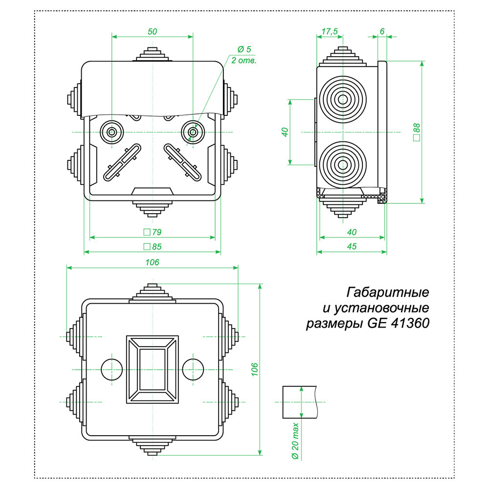 Коробка уравнивания потенциалов 85х85х40 мм IP44 Greenel (GE41360)