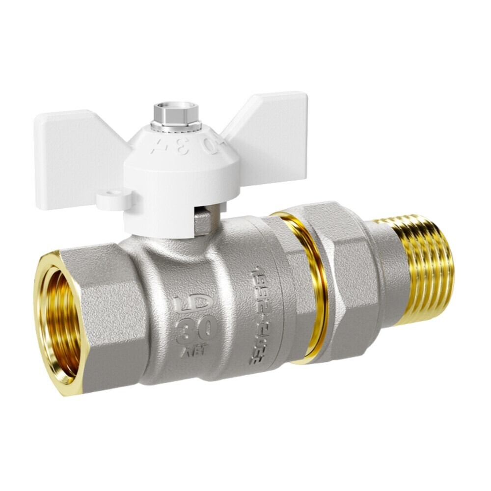 Кран шаровой латунный LD Pride 1/2 ВР(г) х 1/2 ВР(г) бабочка со сгоном прямой (LD 47.316.15 W)