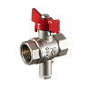 Кран шаровой латунный Valtec 1/2 ВР(г) х 1/2 ВР(ш) полнопроходной бабочка для подключения датчика температуры прямой (VT.128.N.04)