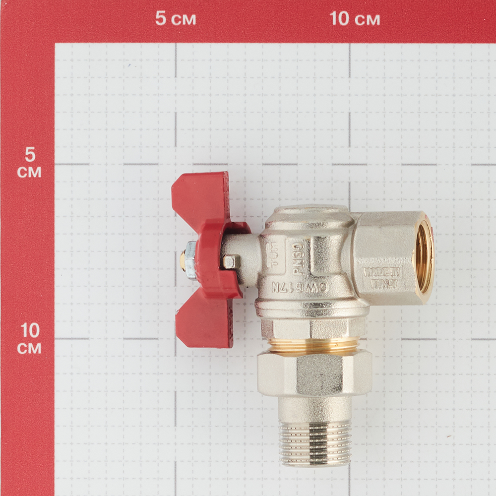 Кран шаровой латунный Tiemme 1/2 ВР(г) х 1/2 НР(ш) бабочка с полусгоном угловой