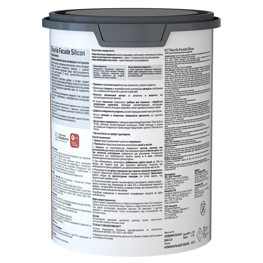 Краска фасадная Tikkurila/Tikkivala Facade Silicon силикон-акриловая база VVA белая 0,9 л