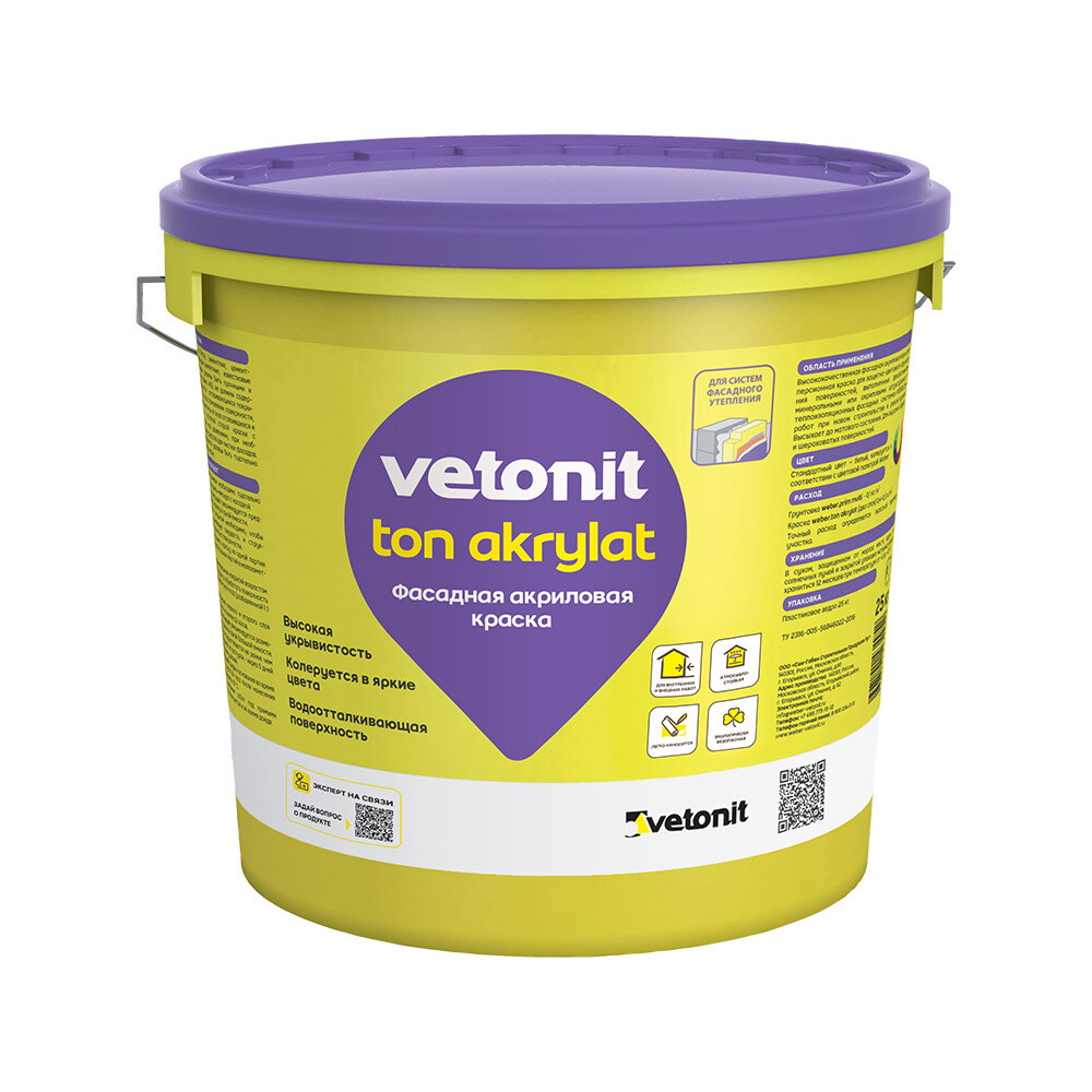 Краска фасадная Vetonit Weber.ton Akrylat база 100А белая 25 кг
