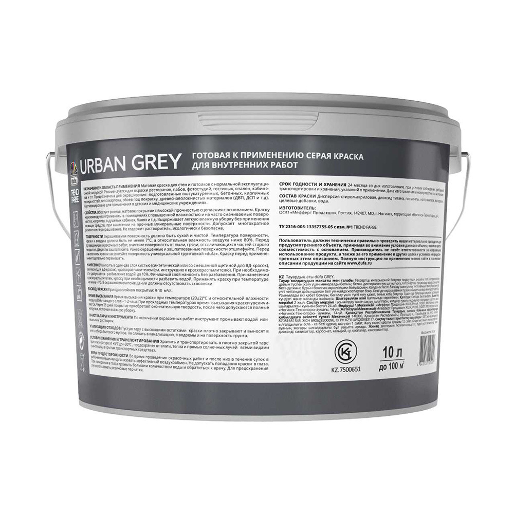 Краска моющаяся Dufa Trend Farbe Urban Grey серая RAL 7037 10 л