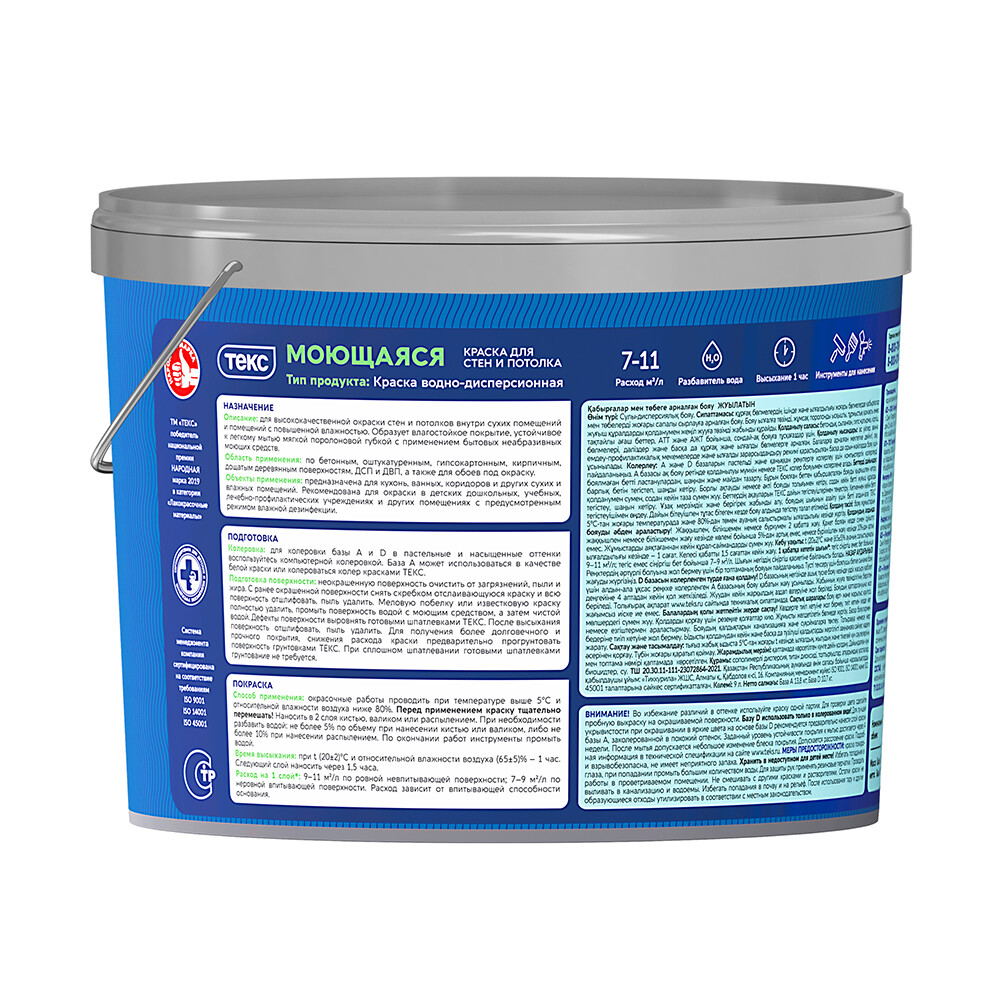 Краска моющаяся Текс Профи база D бесцветная 9 л
