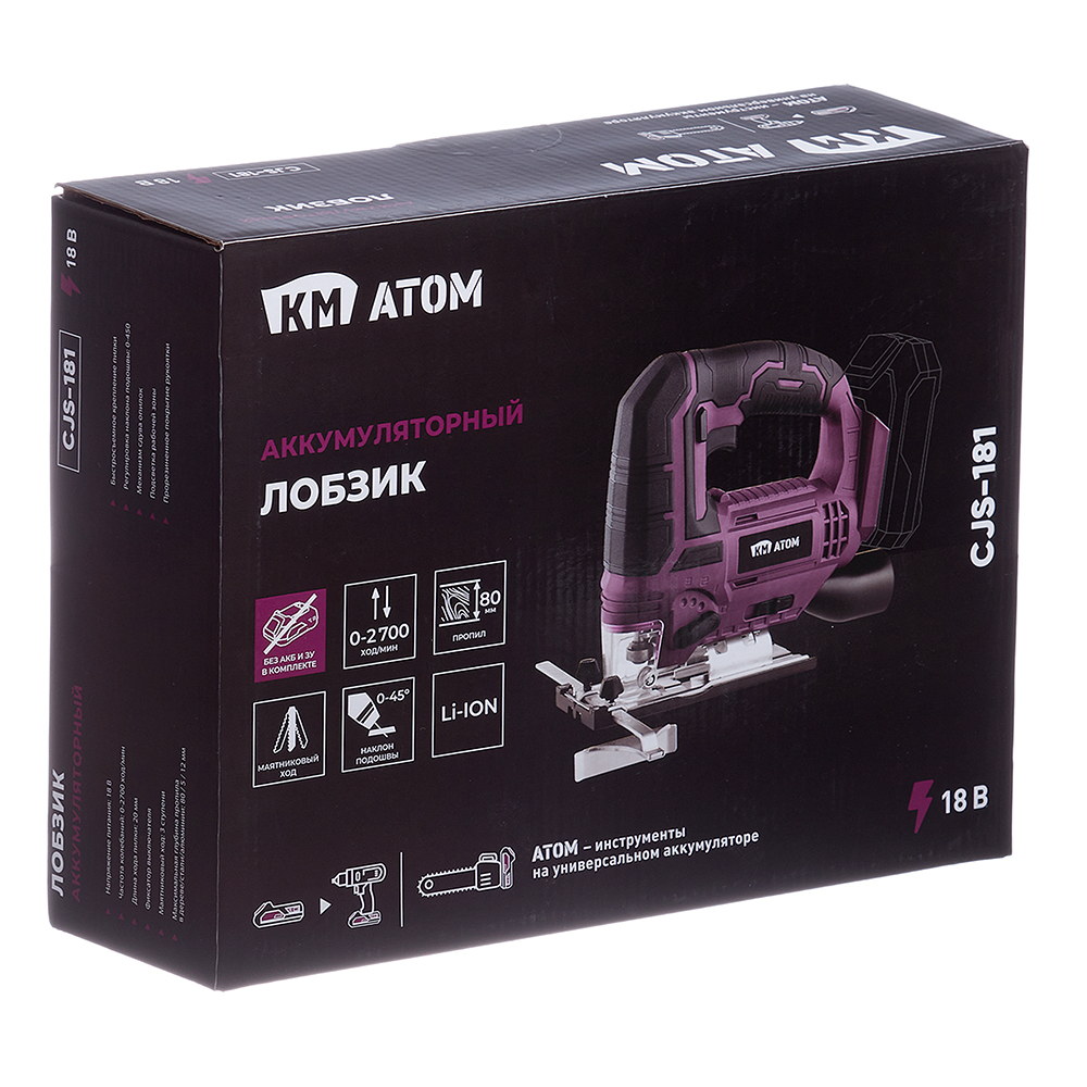 Лобзик аккумуляторный КМ АТОМ 18 В без АКБ и ЗУ (СJS-181)