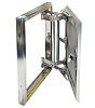 Не требует подрезки плитки, потому как оклеивается отделочными материалами внахлест, что позволяет сохранять раскладку на люке идентичной раскладке материалов на остальной части стены, оставляя люк невидимым. Открывается нажатием, закрывается одним движением. За счет запатентованной системы умной петли, открывается и закрывается по заданной траектории, автоматически центрируя дверцу относительно проема, что исключает скалывание краев отделочных материалов.