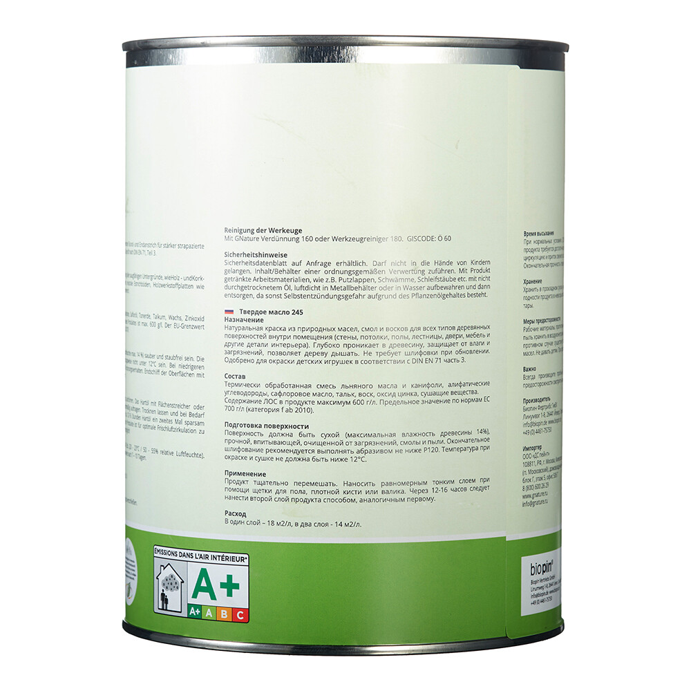 Масло GNature Hartöl для дерева с твердым воском бесцветное матовое 2,5 л