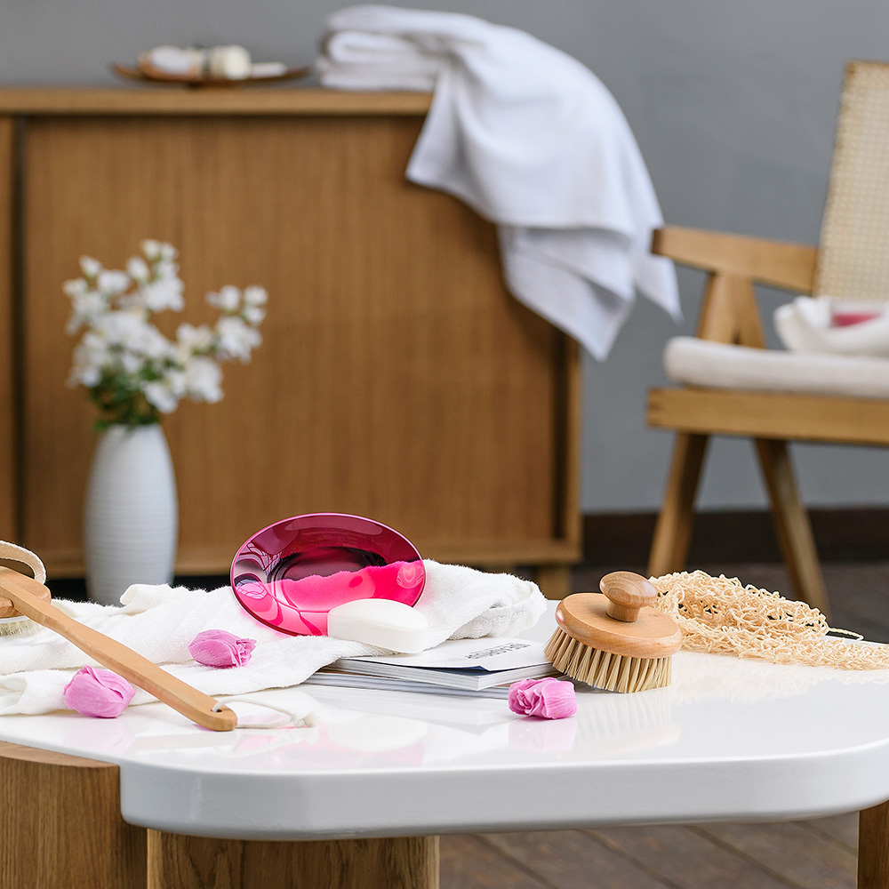 Мыльница для ванной Moroshka Bright Colors настольная стекло розовая (917-311-04)