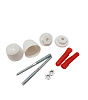 В набор входят: дюбель распорный из нейлона (2 шт), шпилька сантехническая оцинкованная (2 шт), втулка пластмассовая (2 шт), гайка (2 шт), шайба (2 шт).