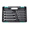 Набор инструментов упакован в пластиковый кейс, который изготовлен из ударопрочного пластика и оснащен металлическими замками.