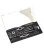 Комплектация: Плашки и метчики: М3,0х0,5 мм, М4,0х0,7 мм, М5,0х0,8 мм, М6,0х1,0 мм, М8,0х1,25 мм, М10,0х1,5 мм, М12,0х1,75 мм, плашкодержатель, метчикодержатель, резьбомер.