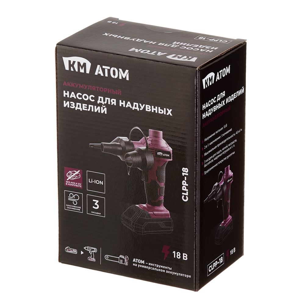 Насос для надувных изделий аккумуляторный КМ АТОМ 18 В без АКБ и ЗУ (CLPP-181)