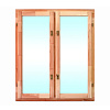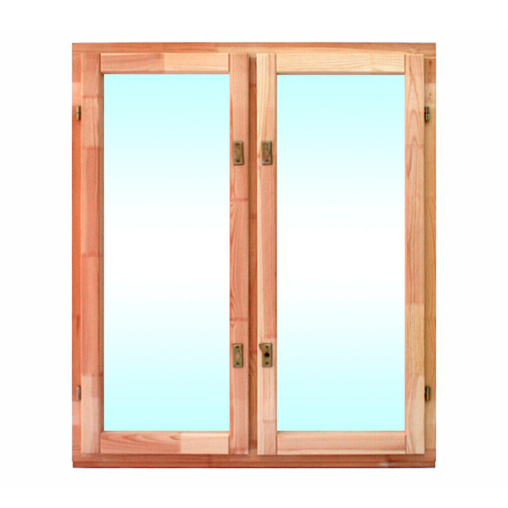 Комплектация: Деревянный оконный блок, двойное остекление, петли, замок, ручка.