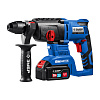 Комплектация: Перфоратор, 1 шт; Аккумулятор, 2 шт; Зарядное устройство, 1 шт; Рукоятка дополнительная, 1 шт; Глубиномер, 1 шт; Смазка для бура, 1 шт; Кейс, 1 шт; Руководство по эксплуатации, 1 шт.
