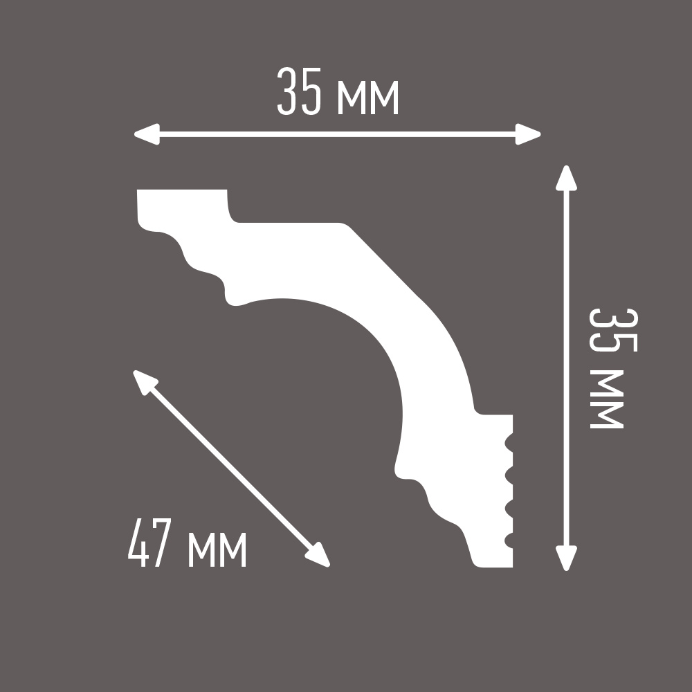 Плинтус потолочный из пенополистирола 35х35х2000 мм под натяжной потолок с возможностью светодиодной подсветки Плинтэкс I35/35SC