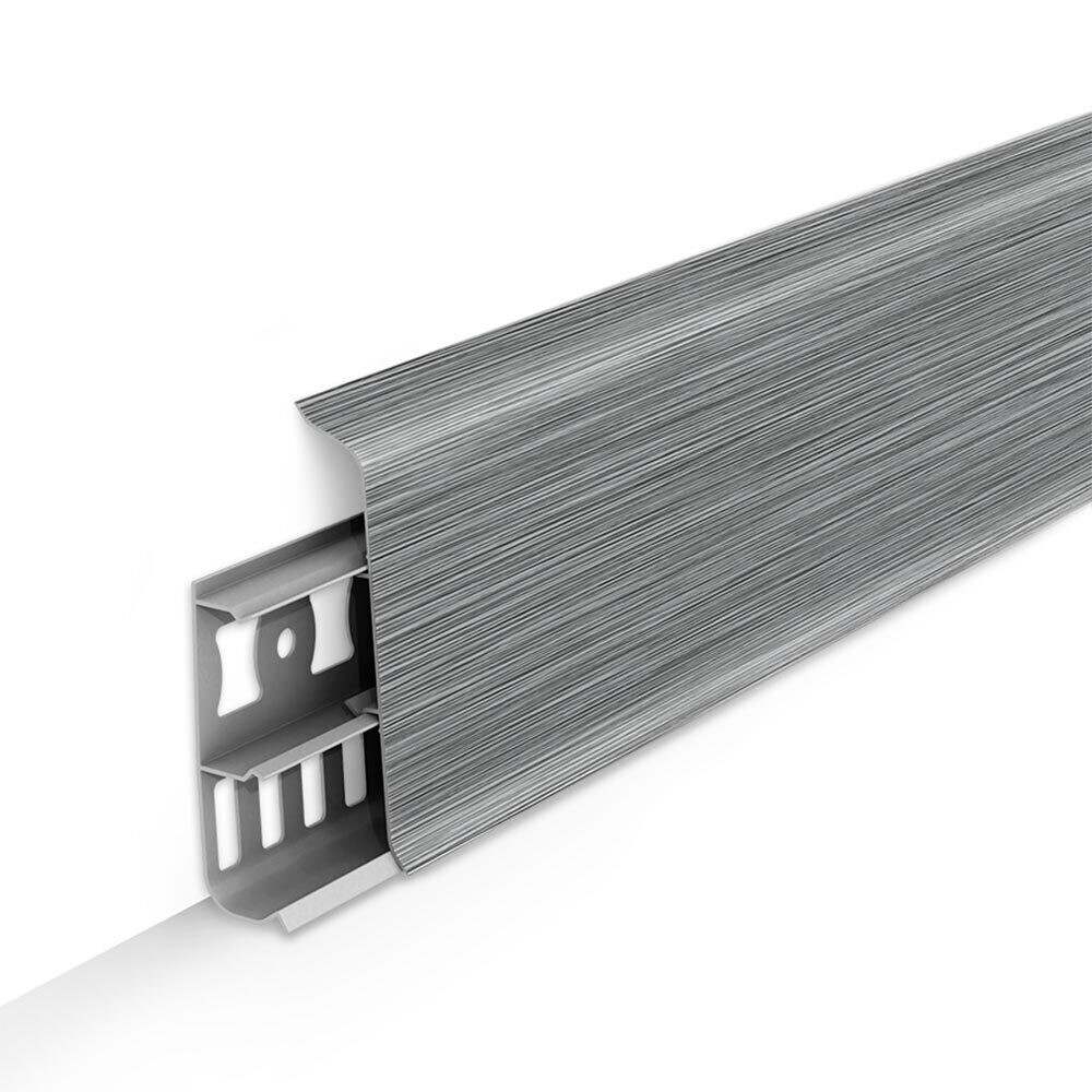 Плинтус ПВХ напольный Деконика 70 мм алюминий темный 2200 мм Г-профиль с кабель-каналом
