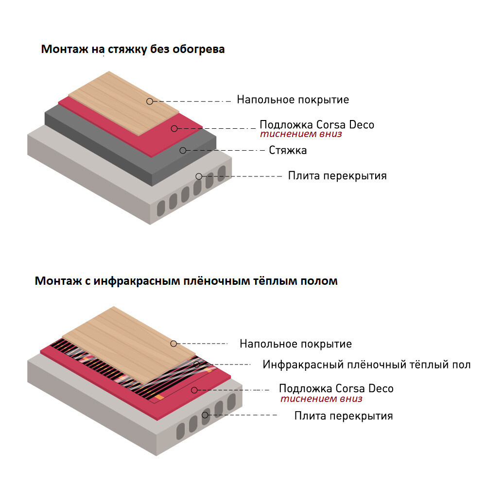 Толщина 1,1 мм сглаживает неровности основания до 0,6 мм. Специальное тиснение предотвращает скольжение подложки по основанию и способствует сглаживанию его неровностей. Материал подложки качественно изолирует напольное покрытие от холодного излучения бетонного пола, а также обладает повышенными свойствами изоляции ударного шума. Подложка Corsa Deco имеет однородную структуру и толщину, она не крошится, не мнется, не теряет форму, не выделяет вредных веществ в процессе эксплуатации, формирует оптимальную поверхность для укладки напольного покрытия.