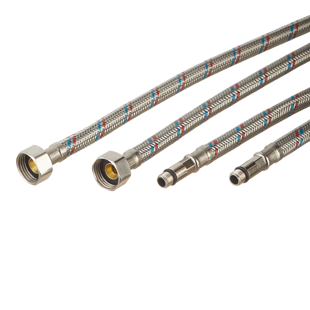 Состав: Резиновый шланг (EPDM) в оплетке из нержавеющей стали AISI 202, гайки и штуцер - латунь.